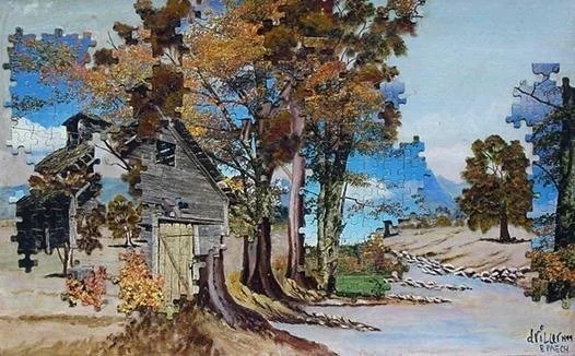 At a deeper level, the puzzle piece becomes a metaphor for the search for meaning within an artwork. The viewer is invited into an active process of assembly and interpretation, confronted with a picture that refuses to fully resolve. The missing pieces gesture toward cultural gaps, forgotten histories, and the impossibility of reconstituting a landscape without acknowledging what has been removed or obscured.