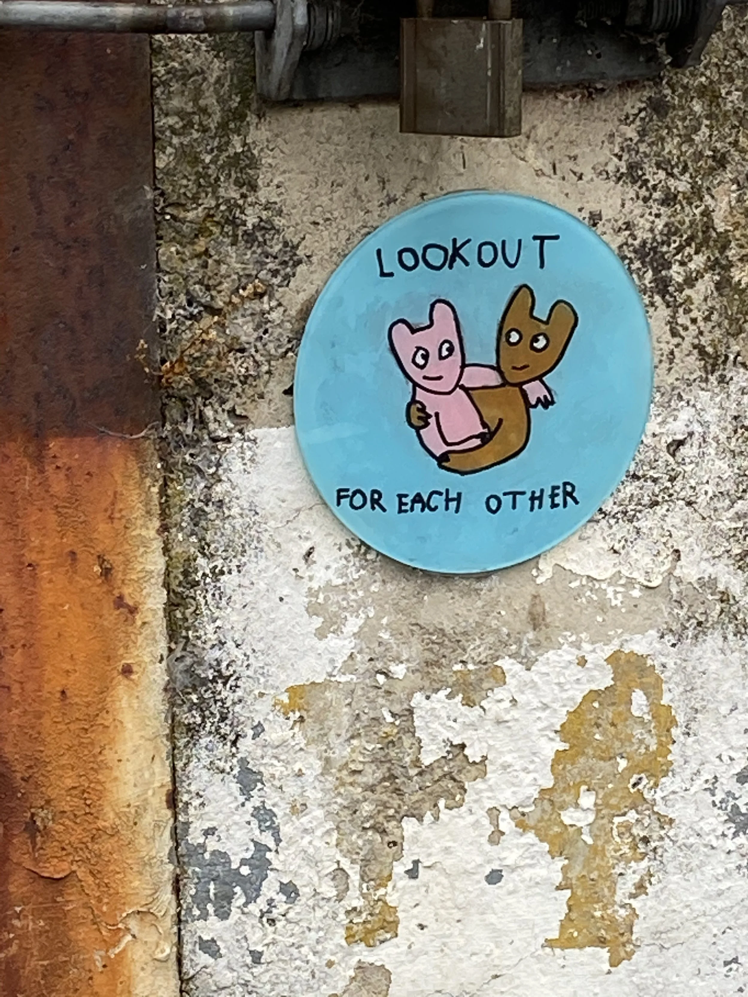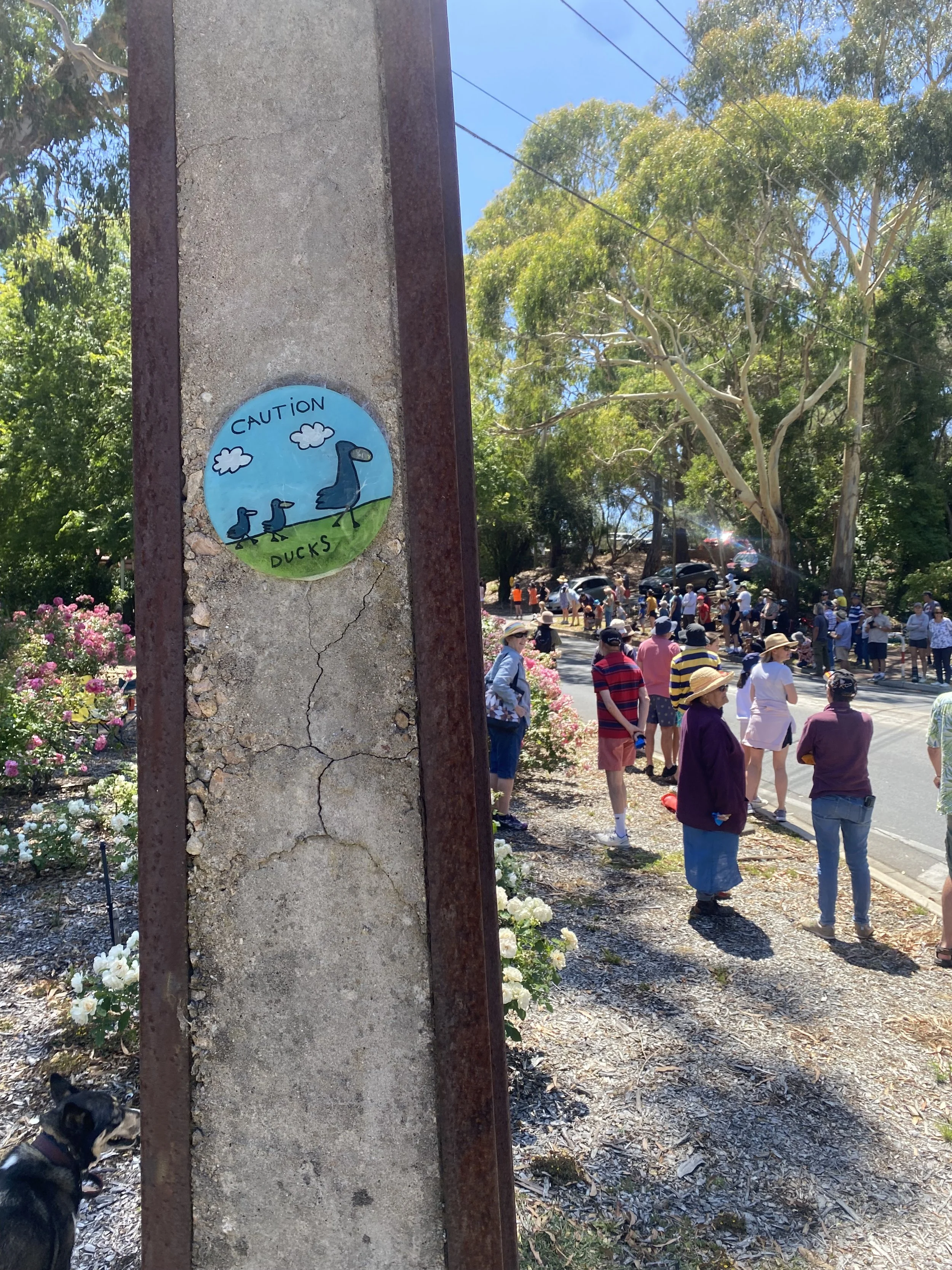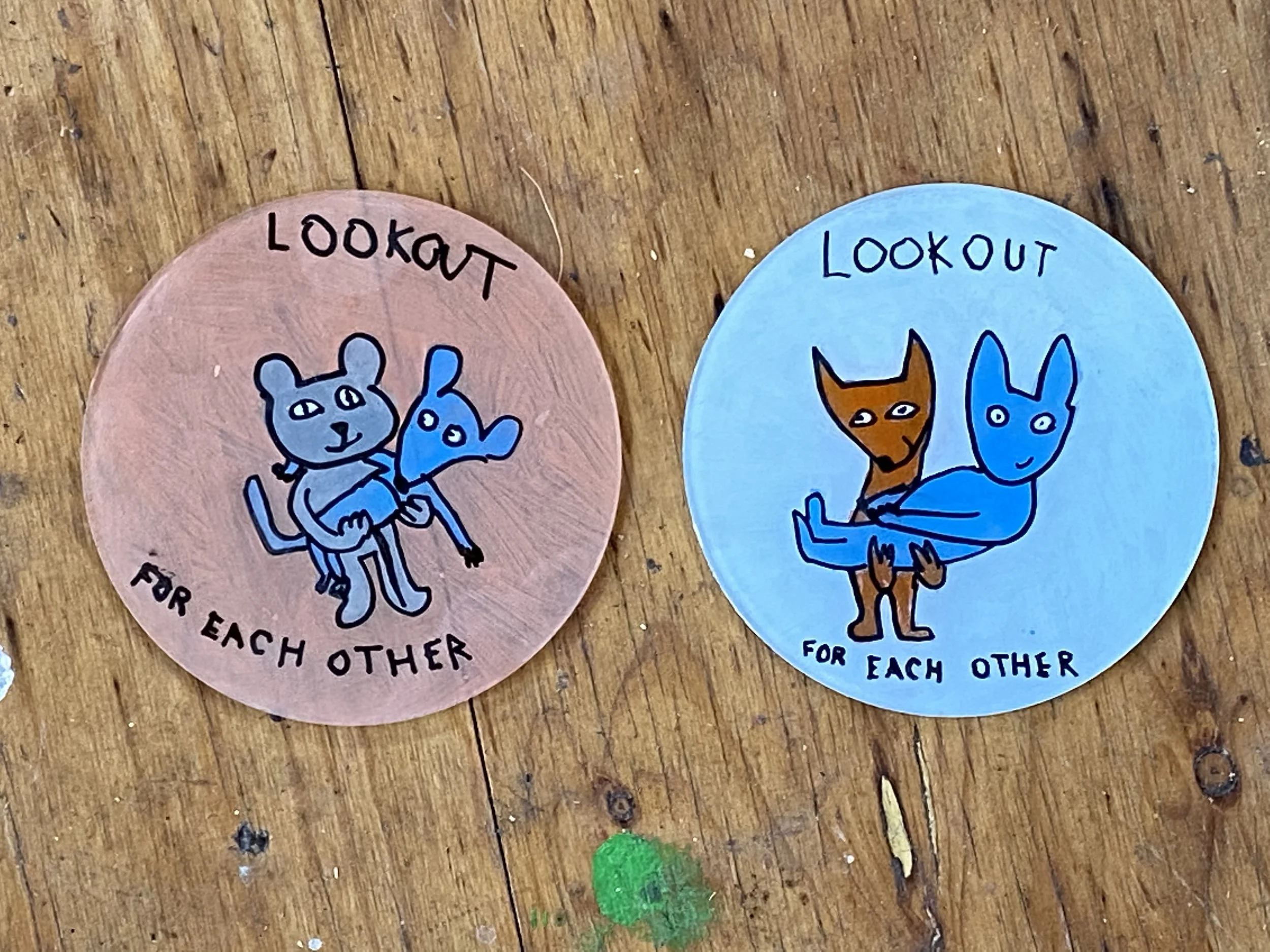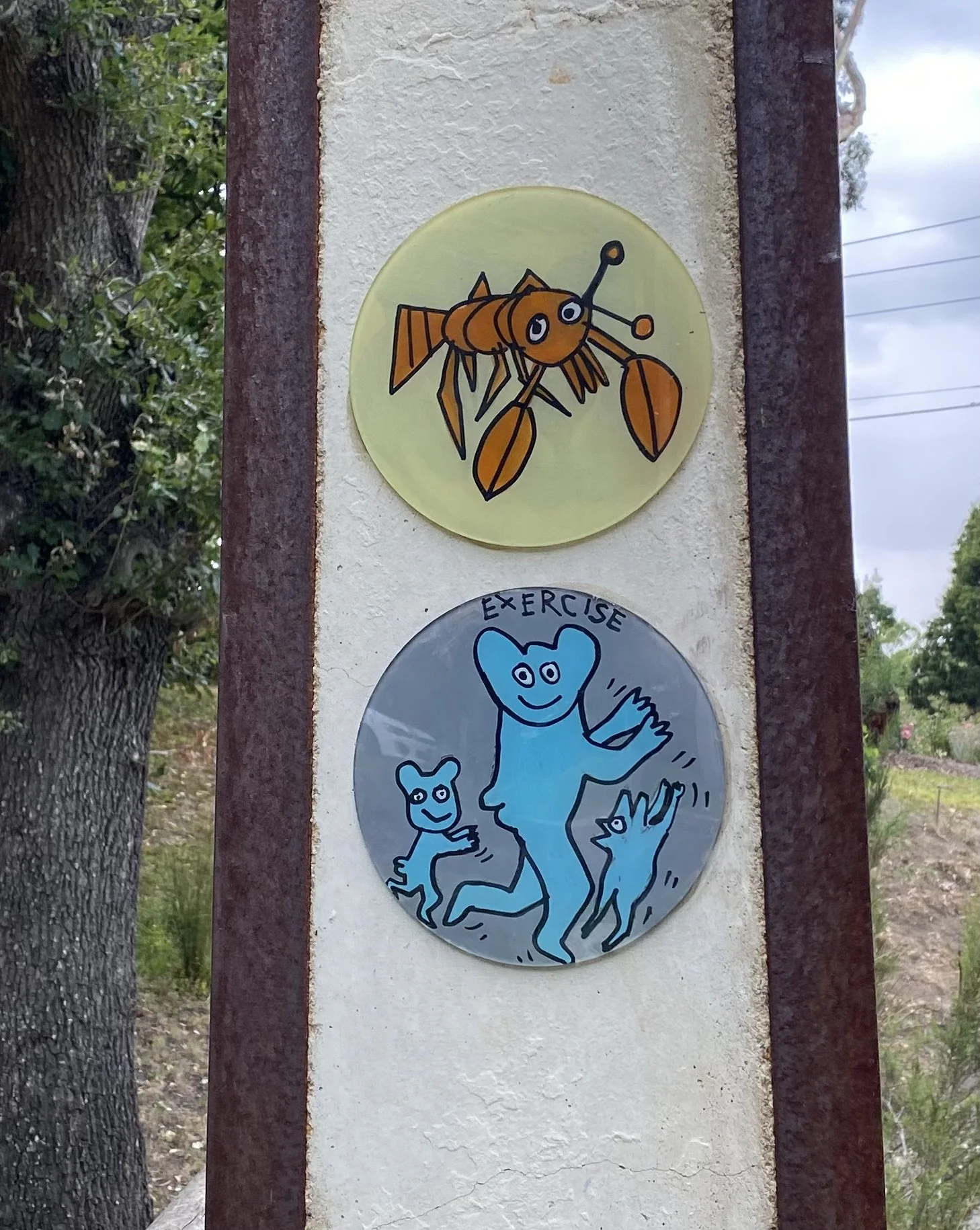 During the 2020 COVID lockdown, an idea took shape. The discs became a way to send small messages of care, humour, and human connection. I painted each one, then—under the cover of darkness—fixed them quietly to Stobie poles around our neighbourhood in Bridgewater in the Adelaide Hills.
