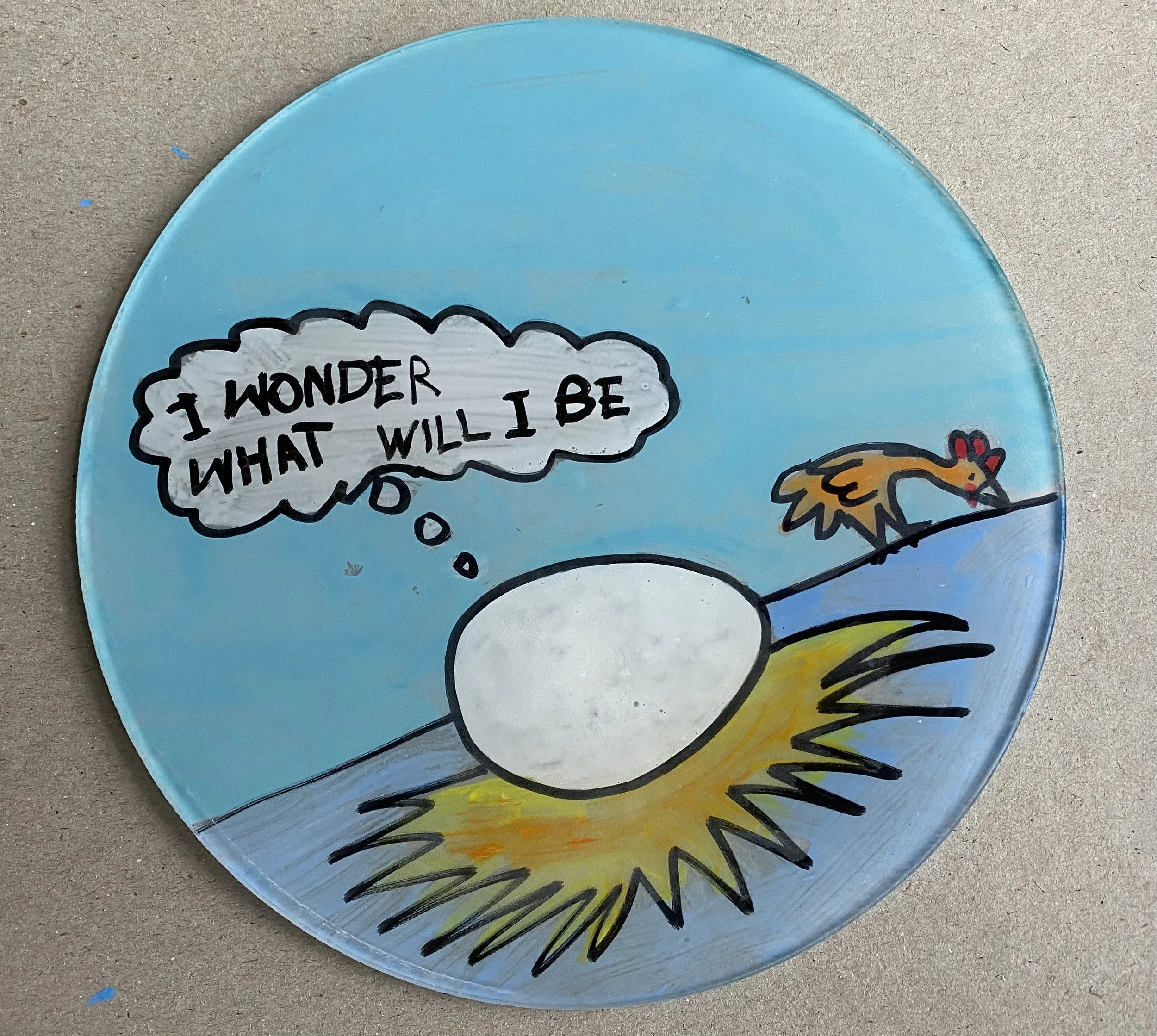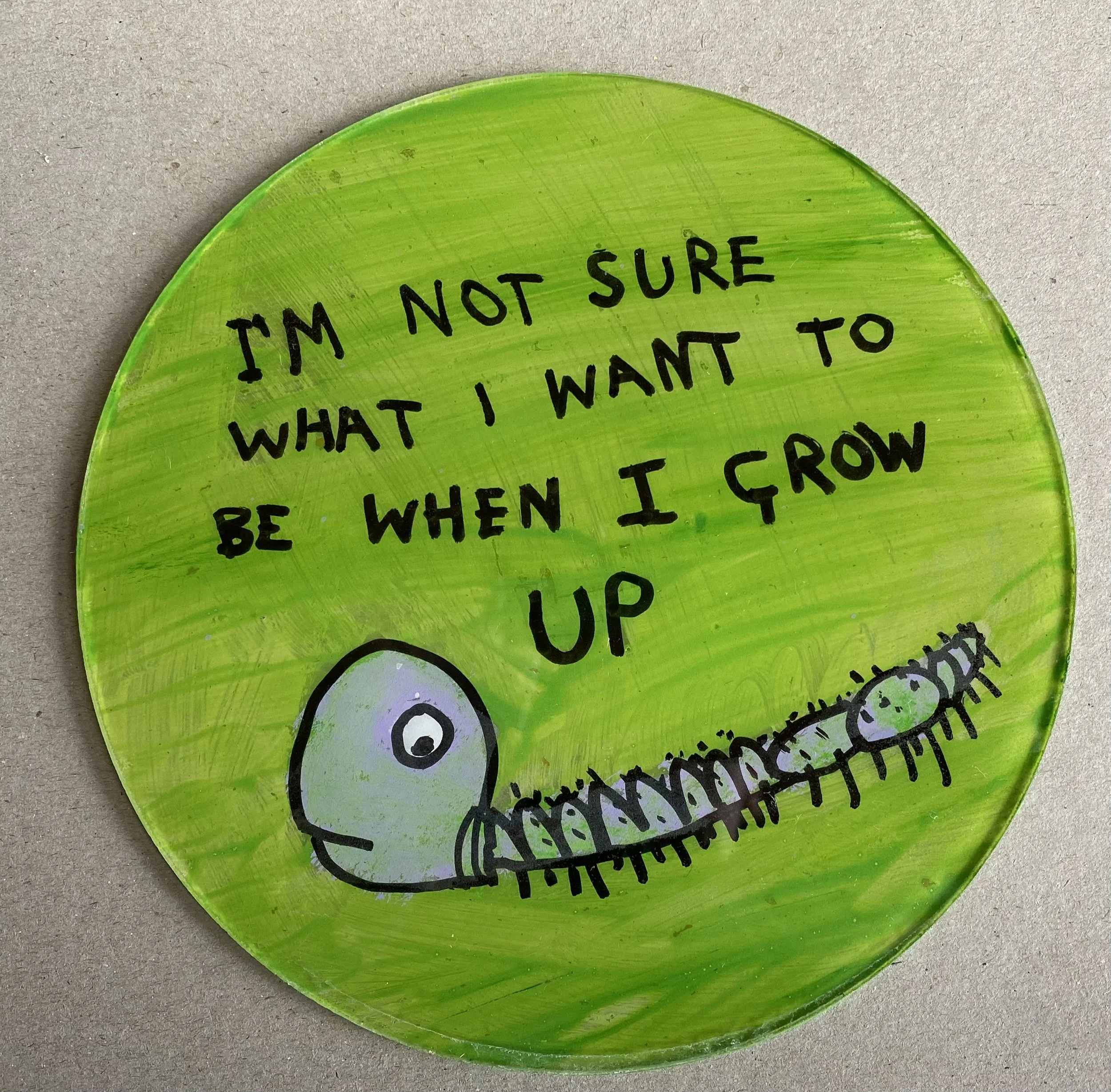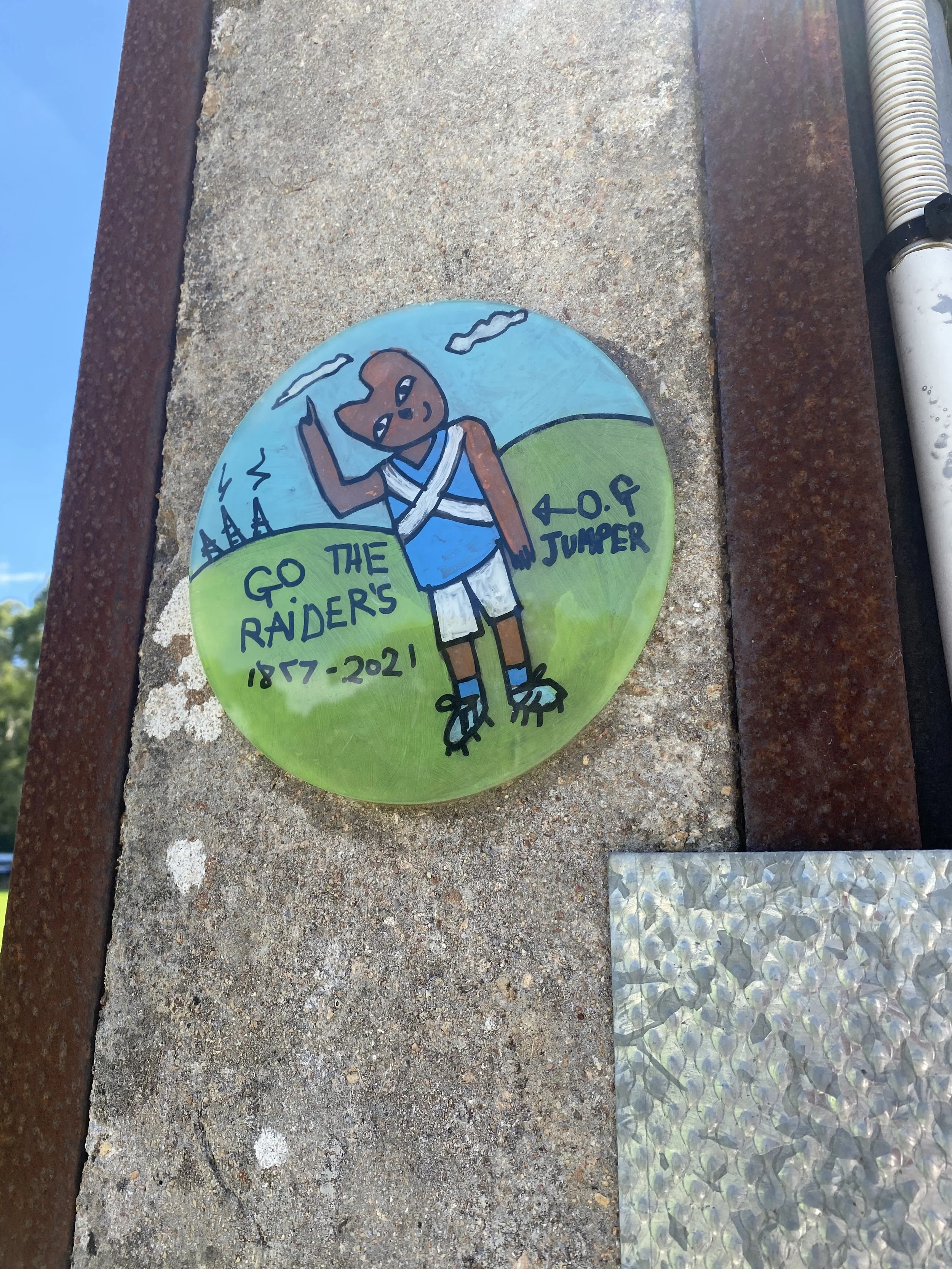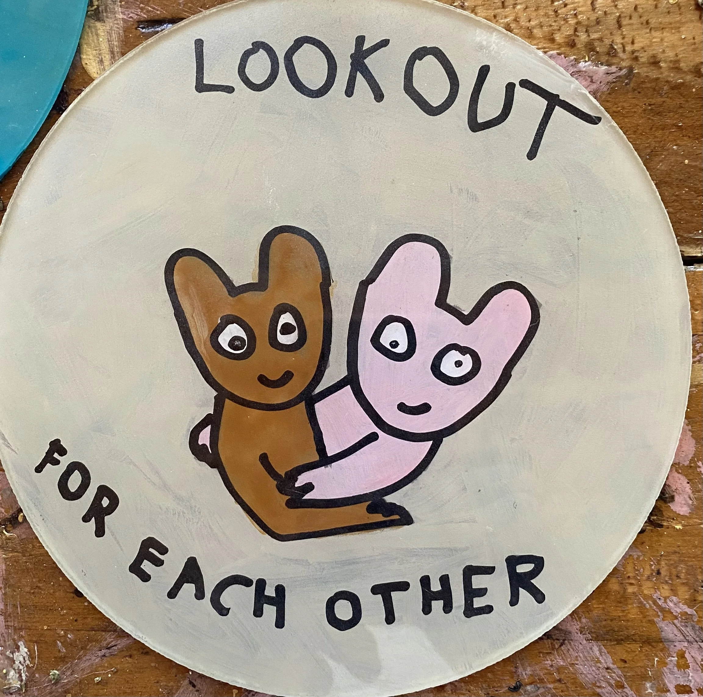 During the 2020 COVID lockdown, an idea took shape. The discs became a way to send small messages of care, humour, and human connection. I painted each one, then—under the cover of darkness—fixed them quietly to Stobie poles around our neighbourhood in Bridgewater in the Adelaide Hills.