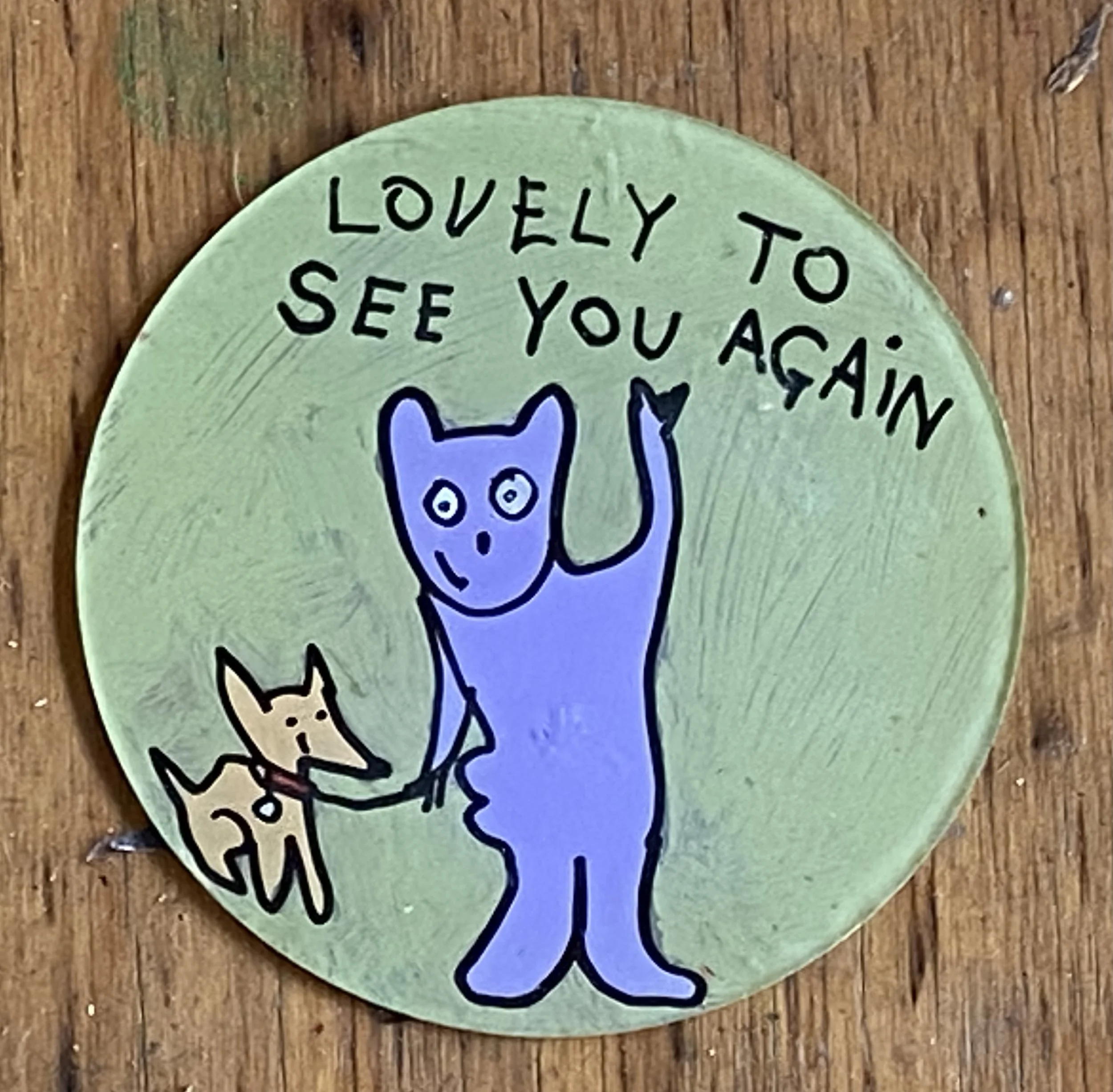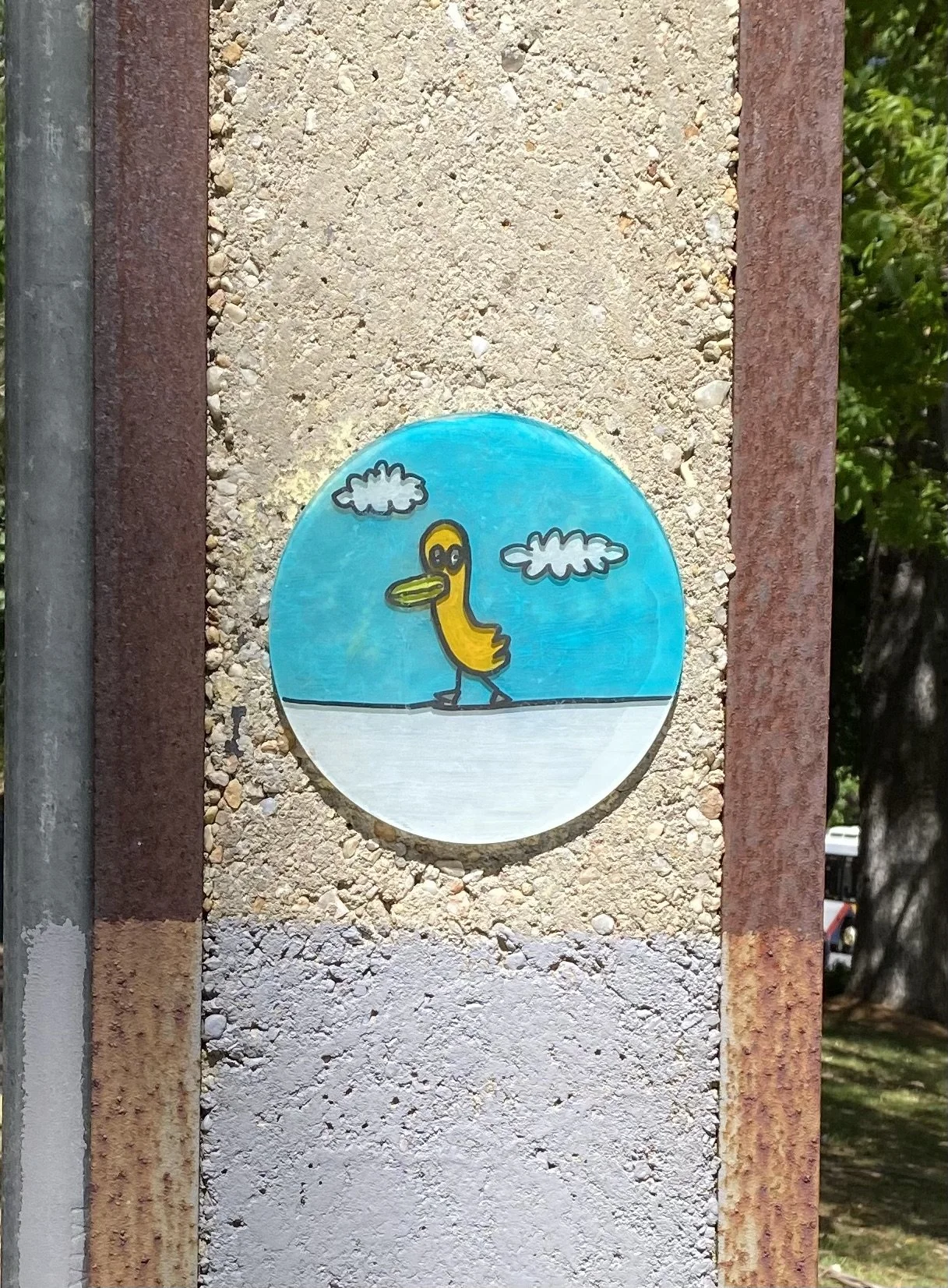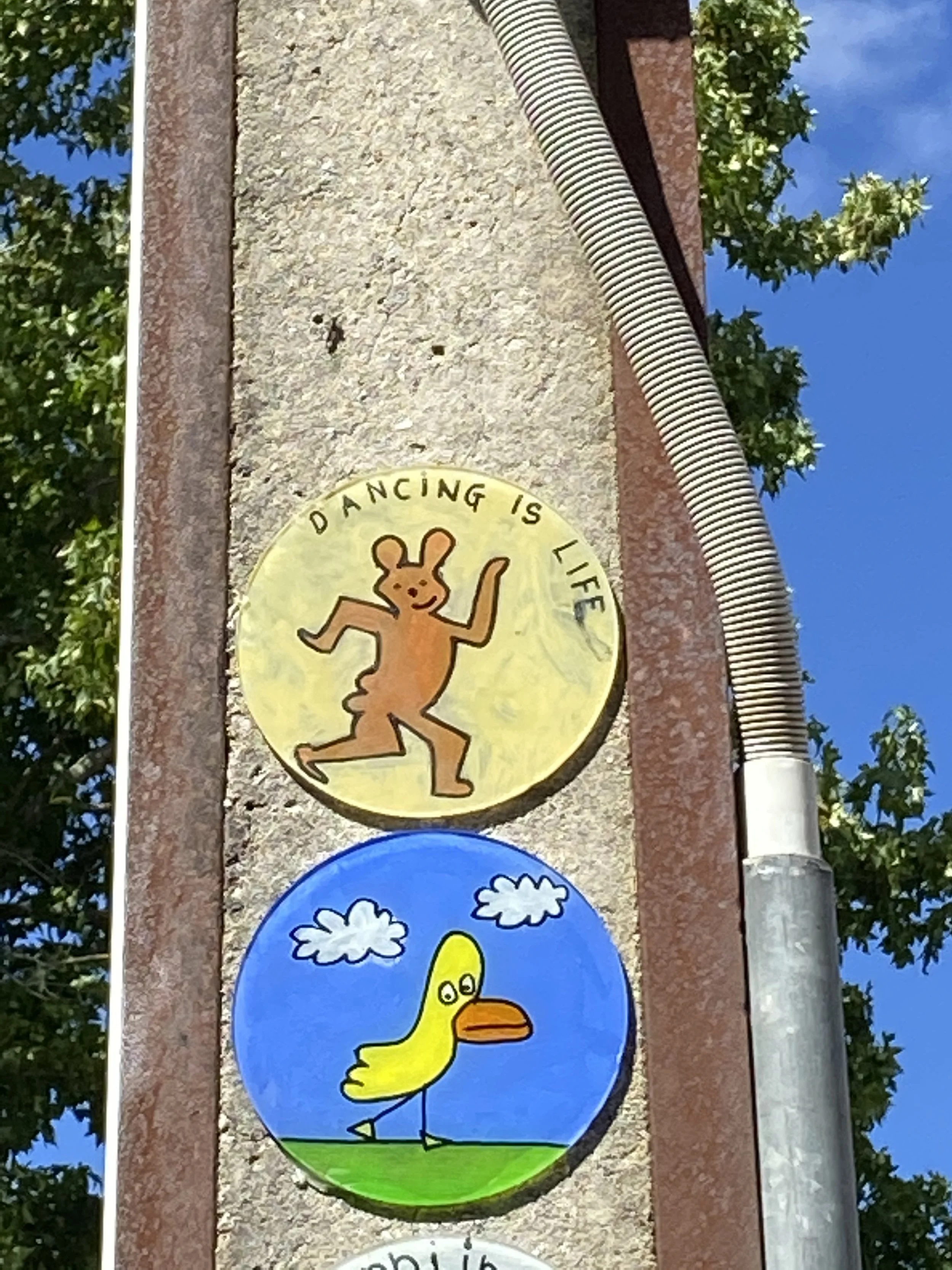 Locals began noticing them: little circles of colour, joy, and companionship appearing overnight. Ducks, creatures, oddball characters, hopeful words. Every disc found its pole. And eventually, I used them all.