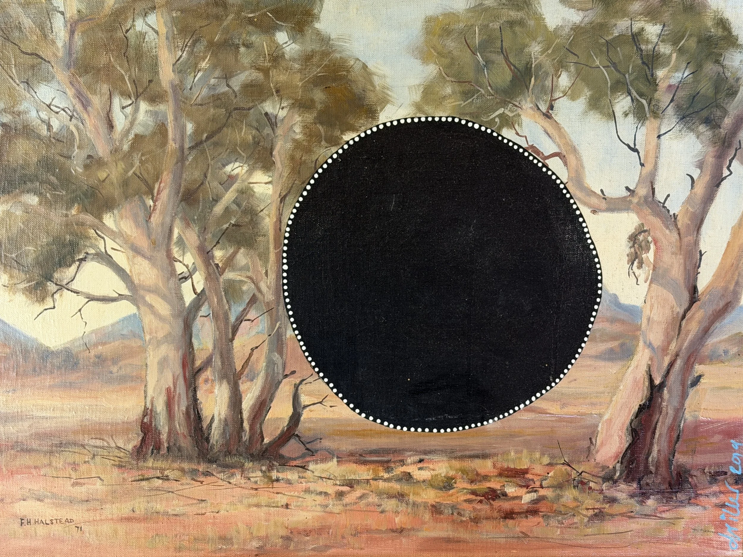 Every work available here is part of Driller Jet Armstrong’s ongoing transformation of the Australian landscape painting tradition. Each piece begins with an existing or forgotten landscape — a relic of another painter’s vision — and is revived, altered, and reimagined through the Daubist process.