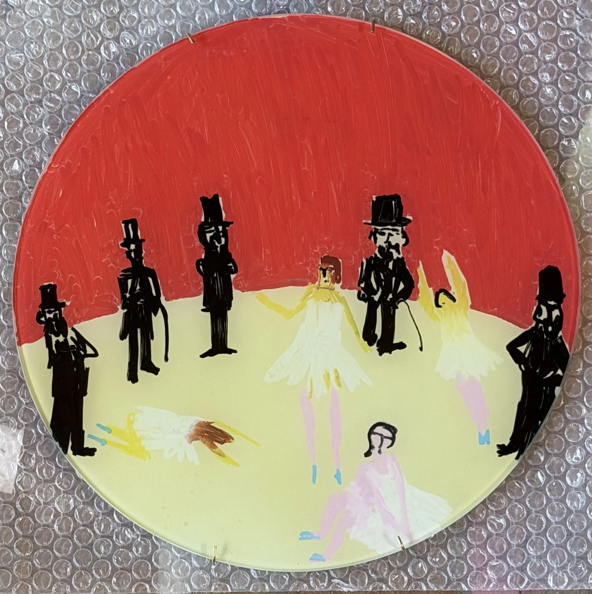 Hand-painted 30 cm glass disc — referencing Edgar Degas