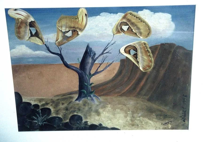 Where the original painter recorded the land, Armstrong resuscitates it. The butterfly wings become symbols of metamorphosis — announcing that even the most exhausted images can transform, unfurl, and take flight under an artist willing to see possibility where none appears.